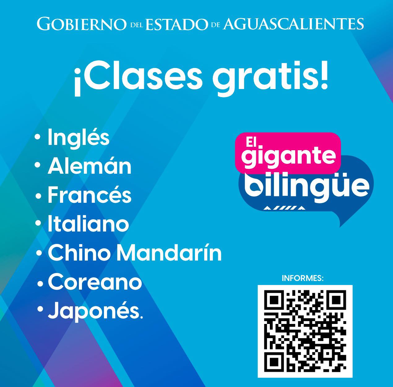 El Gobierno del Estado de Aguascalientes, a través del Instituto de Educación de Aguascalientes (IEA), invita a la población a inscribirse en los cursos gratuitos de Inglés, Alemán, Francés, Italiano, Chino Mandarín, Coreano y Japonés.