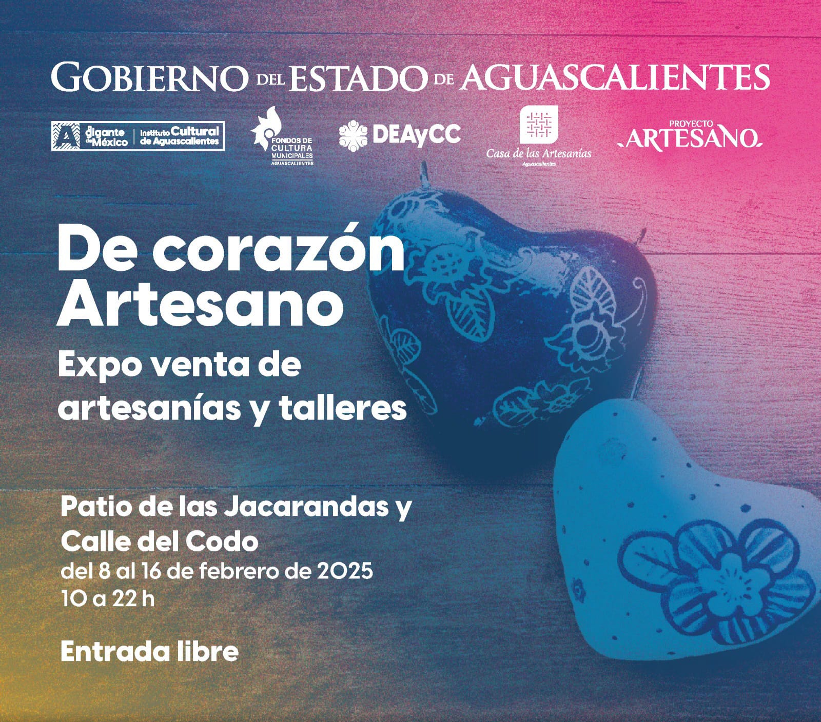 El Instituto Cultural de Aguascalientes invita a visitar los pabellones artesanales que se instalarán del 8 al 16 de febrero en el Patio de las Jacarandas y en la calle del Codo de las 10:00 a las 22:00 horas.