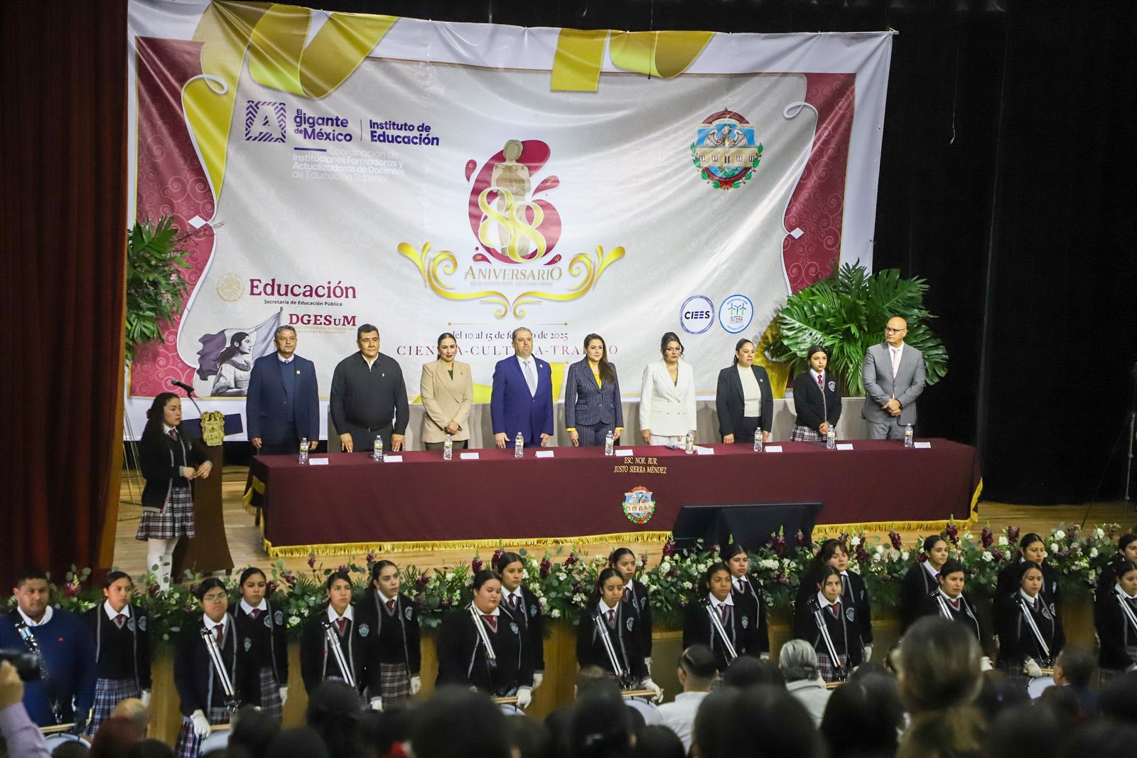 “Hoy, celebramos ocho décadas en las que esta Normal ha formado generaciones de maestras que han llevado el conocimiento a cada rincón del país, cambiando vidas con su entrega; sé que la educación es la llave que abre las puertas del progreso; sé que invertir en la educación es invertir en el futuro; por eso, hemos hecho de la educación una prioridad. Nuestro gobierno seguirá respaldando a las normales y reconociendo la gran labor de los docentes, pues no hay tarea más importante que educar, y no hay fuerza más empoderada que una maestra queriendo cambiar al mundo, sigan siempre adelante, nosotros estaremos siempre con ustedes”, les expresó la gobernadora.