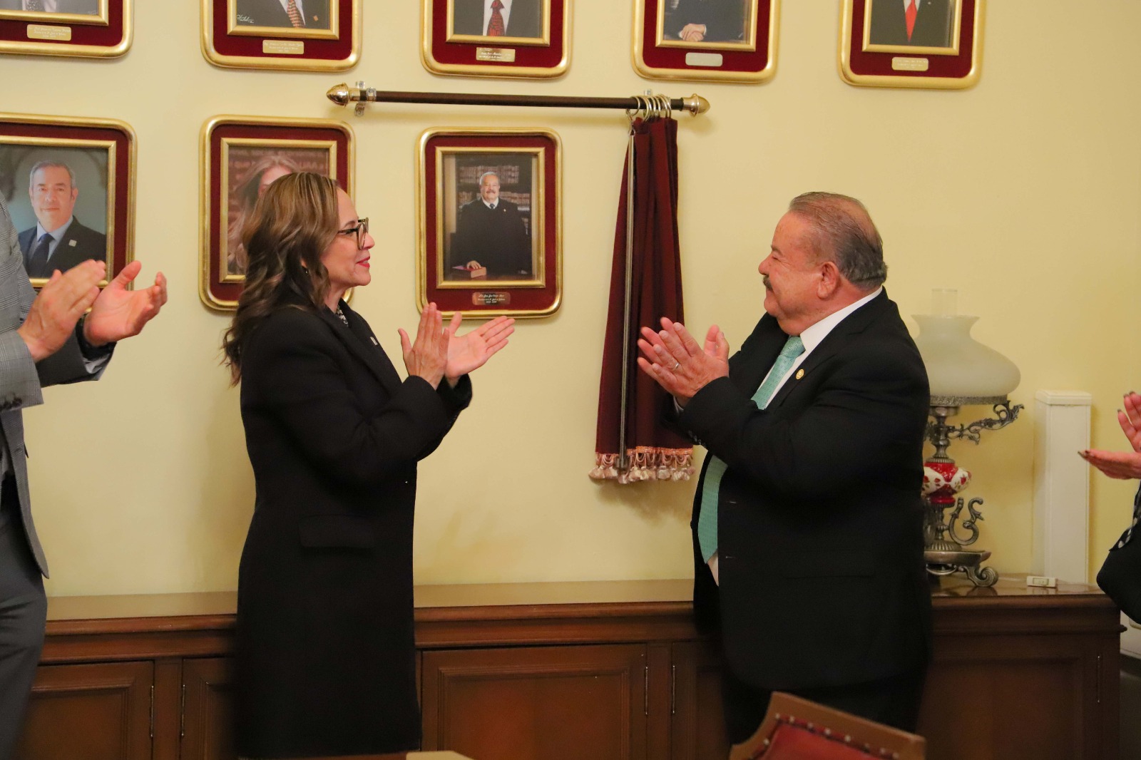 Finalmente, el Mtro. Orozco López efectuó la develación de su fotografía, la cual fue integrada al muro de ex presidentes de la H. Junta de Gobierno. Agradeció a la universidad que, desde su etapa como estudiante, le ha abierto las puertas hasta ahora como docente y, recientemente, durante la labor desempeñada en la Junta de Gobierno.
