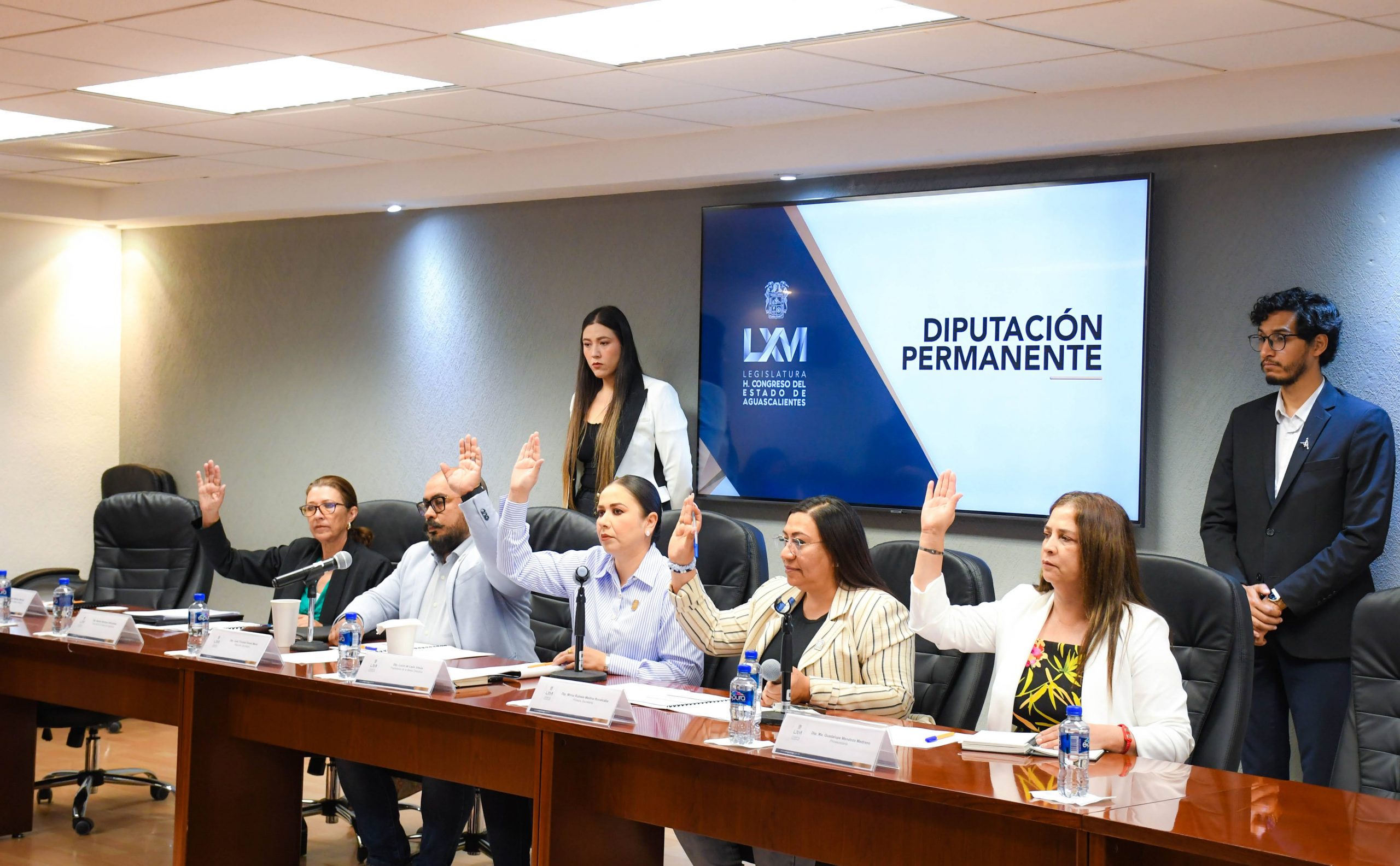 La legisladora Lucía de León Ursúa, presidenta de la Mesa Directiva de la Diputación Permanente de la LXVI Legislatura del Congreso de Aguascalientes, en conjunto con las y los asambleístas integrantes Mirna Medina, Ma. Guadalupe Mendoza, Beatriz Montoya y Trinidad Romo, efectuaron su novena sesión.