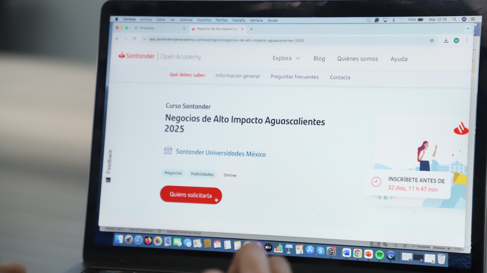 La fecha límite para inscribirse es el 15 de marzo en https://app.santanderopenacademy.com/es/program/negocios-de-alto-impacto-aguascalientes-2025