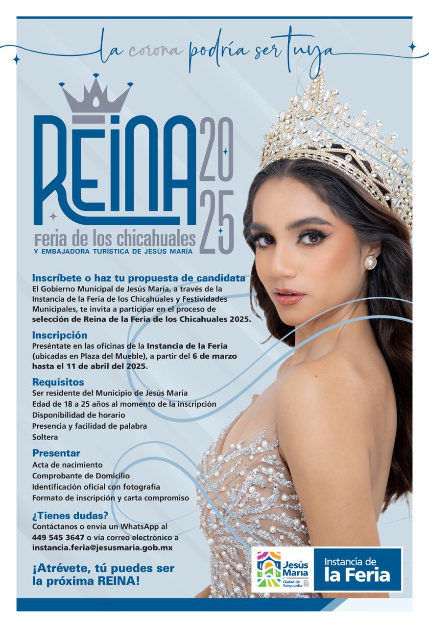 La convocatoria para ser Candidata a Reina de la Feria de los Chicahuales y Embajadora Turística de Jesús María 2025 ya está abierta. 👑