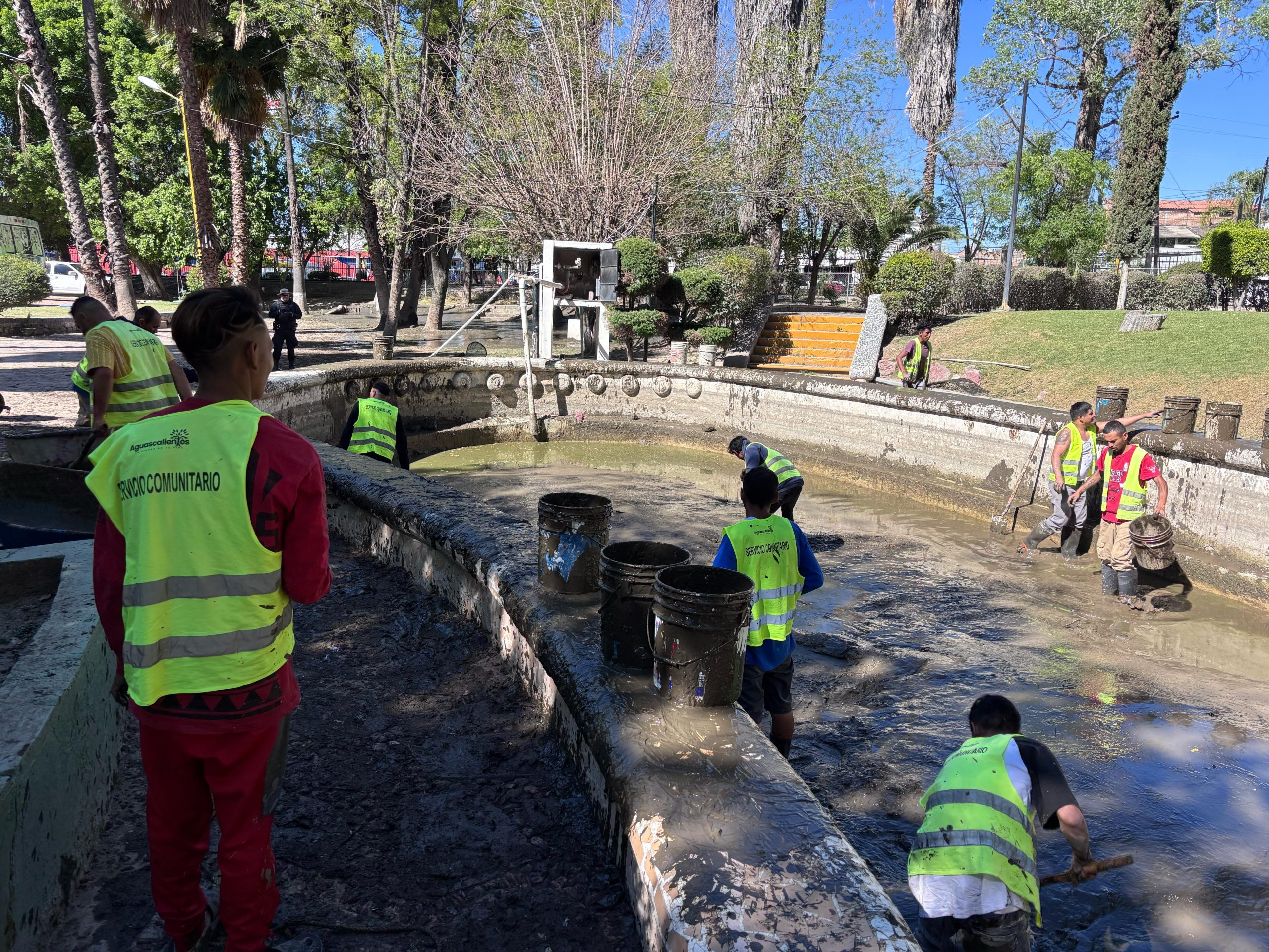Asimismo, destacó que gracias al trabajo interinstitucional y coordinado se puede realizar este mantenimiento con el apoyo del personal de la Dirección de Parques y Jardines, los infractores que participan en el programa Servicio Comunitario y los veterinarios que están atendiendo a los peces y patos que habitan en este cuerpo de agua, quienes serán resguardados en el Vivero Municipal y en el parque México, respectivamente en lo que terminan las labores de limpieza.