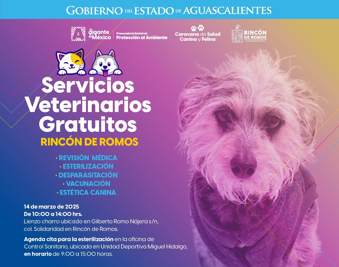 El Gobierno del Estado invita a los dueños de mascotas a no perderse la Caravana de la Salud Canina y Felina que se llevará a cabo este viernes 14 de marzo en el municipio de Rincón de Romos, ¡y lo mejor de todo es que los servicios son gratuitos!