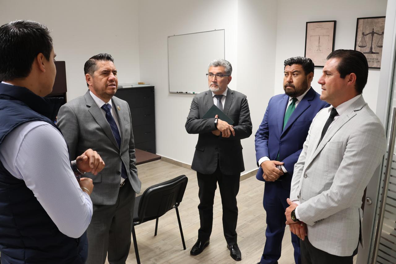 • El fiscal general del Estado, Manuel Alonso García, acudió a la Fiscalía Regional ubicada en el municipio de Pabellón de Arteaga, con el propósito de conocer detalladamente las necesidades del personal para perfeccionar los servicios que se brindan, además de dialogar con los usuarios.