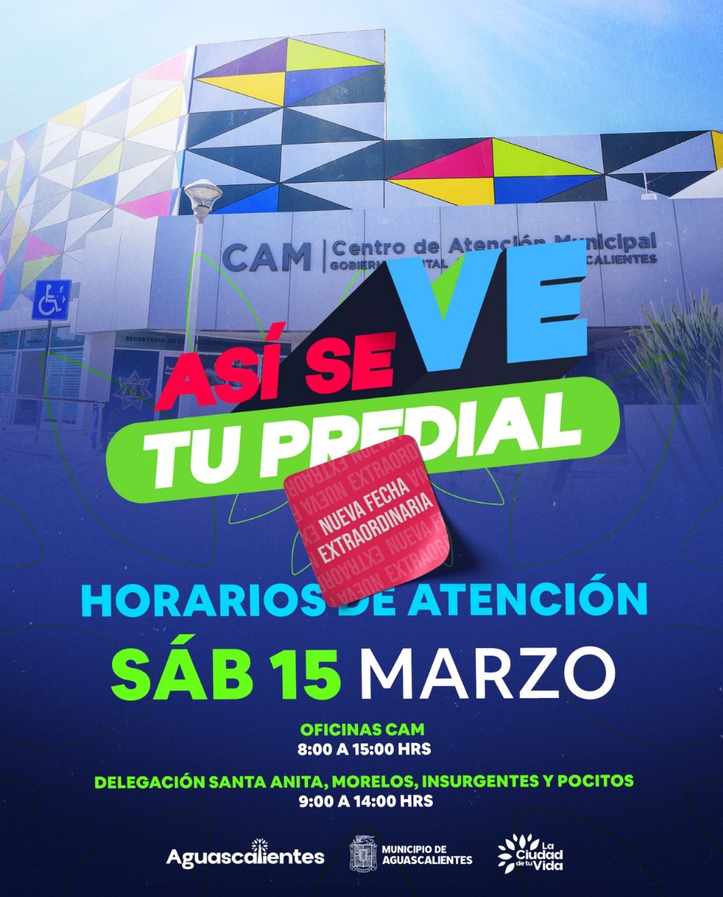 La titular de la Secretaría de Finanzas del Municipio de Aguascalientes, Miriam Rodríguez Tiscareño, dio a conocer que para facilitar a la ciudadanía el pago de predial, este sábado 15 de marzo, el CAM dará servicio de 8:00 a 15:00 horas.