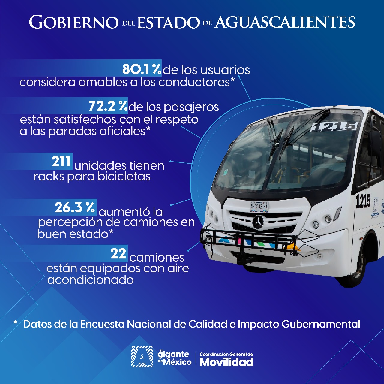Esta inversión en la modernización del transporte público se ve reflejada en un incremento en la satisfacción de los usuarios, según datos de la Encuesta Nacional de Calidad e Impacto Gubernamental del INEGI.
