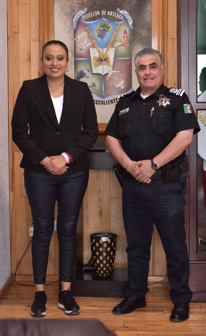 El Secretario de Seguridad Pública del Estado, Maestro Antonio Martínez Romo, sostuvo una reunión con la Presidenta Municipal de Pabellón de Arteaga, Lucero Espinoza Vázquez, con el objetivo de reforzar la seguridad y coordinación en el municipio.