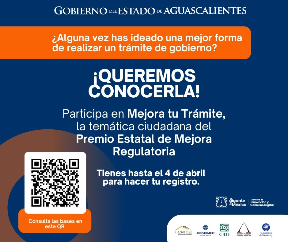 Cabe destacar que este concurso forma parte del Premio Estatal de Mejora Regulatoria, cuyo objetivo es reconocer la labor de las dependencias y entidades de la administración pública estatal y municipal del estado de Aguascalientes que hayan realizado acciones de innovación e implementación de prácticas o herramientas para mejorar y optimizar sus trámites y servicios.