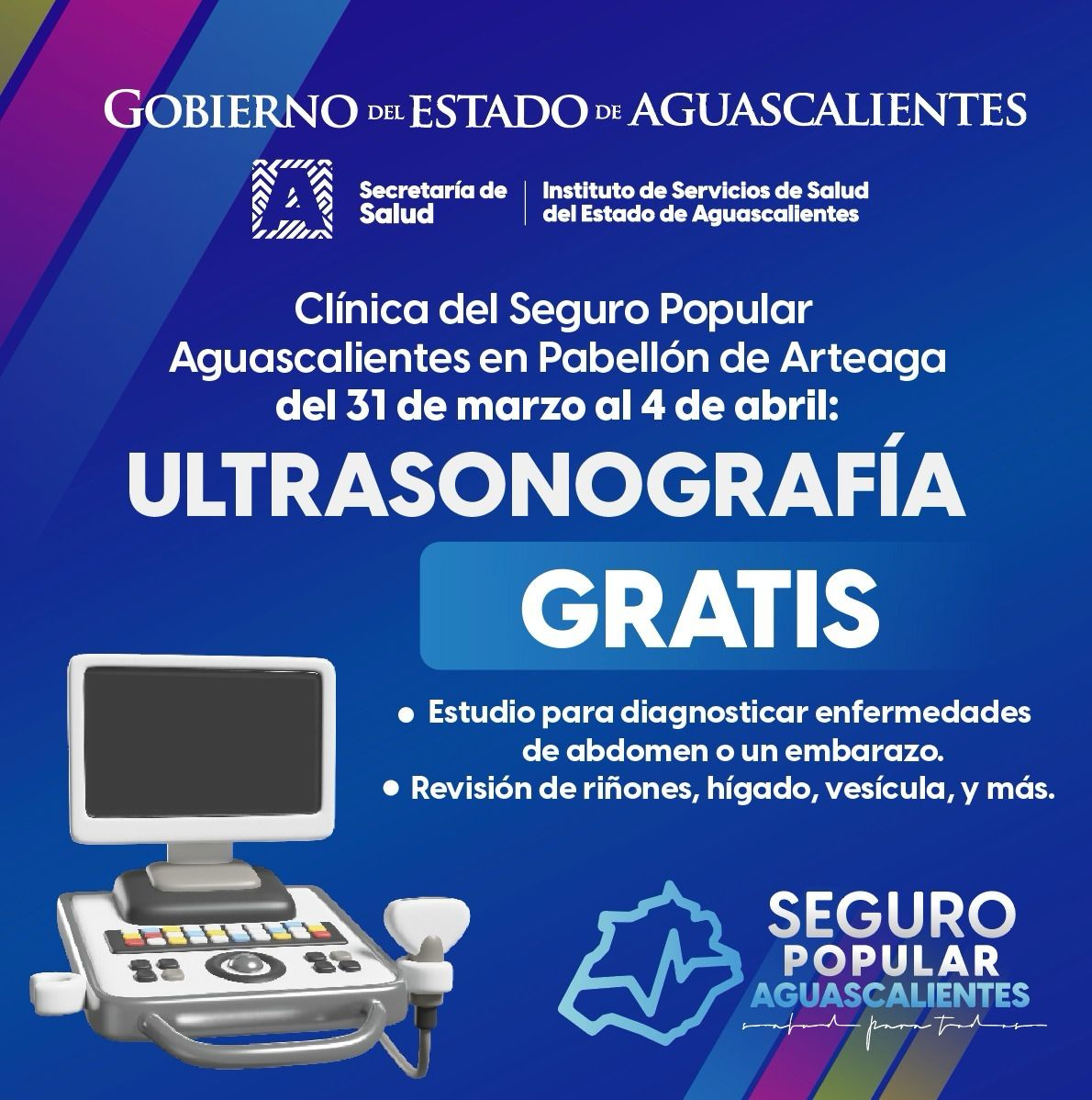 Ultrasonografía gratis del 31 al 4 de abril, en la Clínica del Seguro Popular Aguascalientes en Pabellón de Arteaga