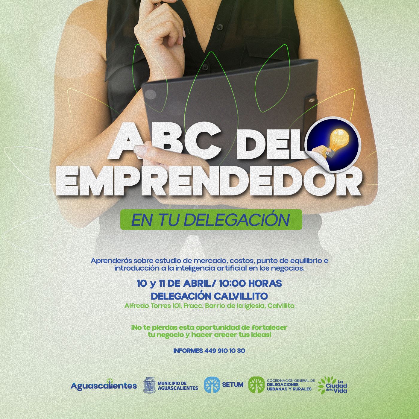 Este programa proporcionará herramientas fundamentales para el emprendimiento, abarcando temas esenciales como análisis de mercado, cálculo de costos, determinación del punto de equilibrio e introducción a la inteligencia artificial aplicada a los negocios. A través de estas capacitaciones, el Municipio busca impulsar la innovación y fortalecer el desarrollo económico en Aguascalientes, llevando el conocimiento y la formación empresarial a distintas delegaciones.