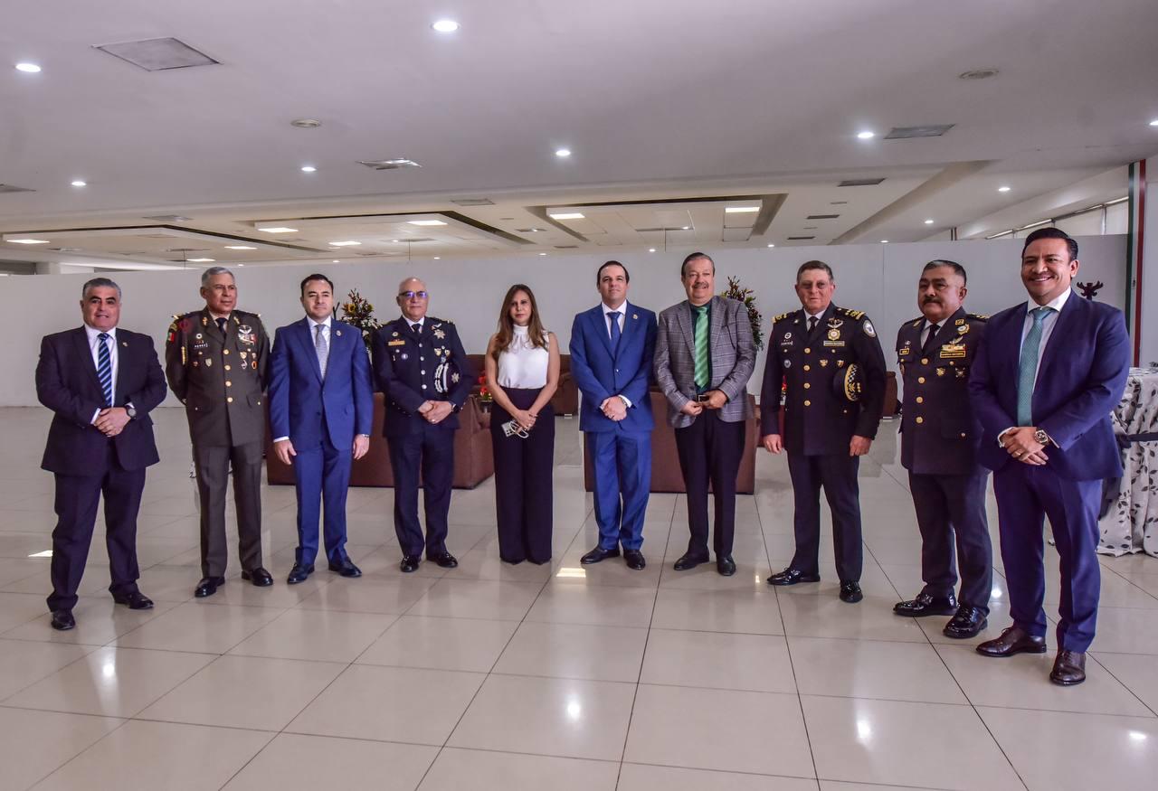 El secretario de Seguridad Pública del Estado, Antonio Martínez Romo, participó en la ceremonia de toma de posesión del general de Brigada de Estado Mayor, Gerardo Serna Melchor, quien asumió el cargo de coordinador territorial de la Guardia Nacional para Aguascalientes, Durango, Guanajuato, San Luis Potosí y Zacatecas.