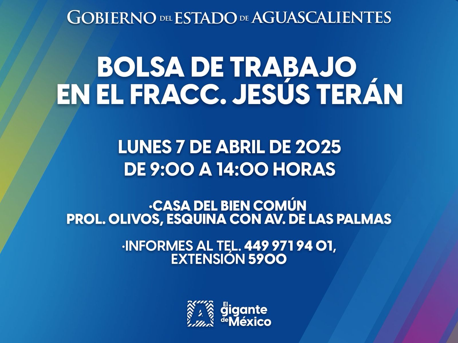 BOLSA DE TRABAJO EN EL FRACC. JESÚS TERÁN ESTE LUNES 6 DE ABRIL