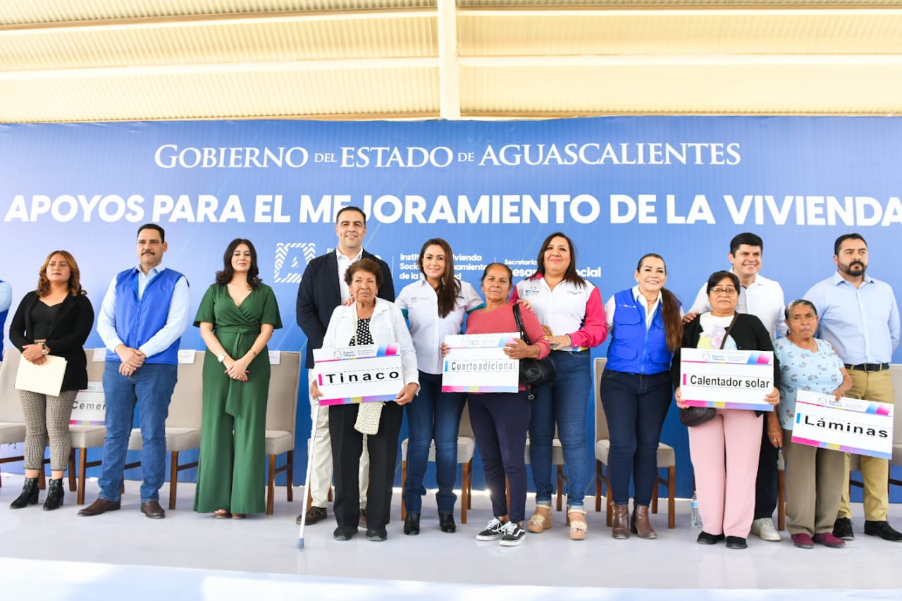 La gobernadora de Aguascalientes, Tere Jiménez, entregó apoyos para el mejoramiento de vivienda en Rincón de Romos, como material para la construcción de cuartos adicionales, calentadores solares y tinacos, entre otros; con ello, más de 150 familias que habitan en ese municipio, podrán mejorar su calidad de vida.