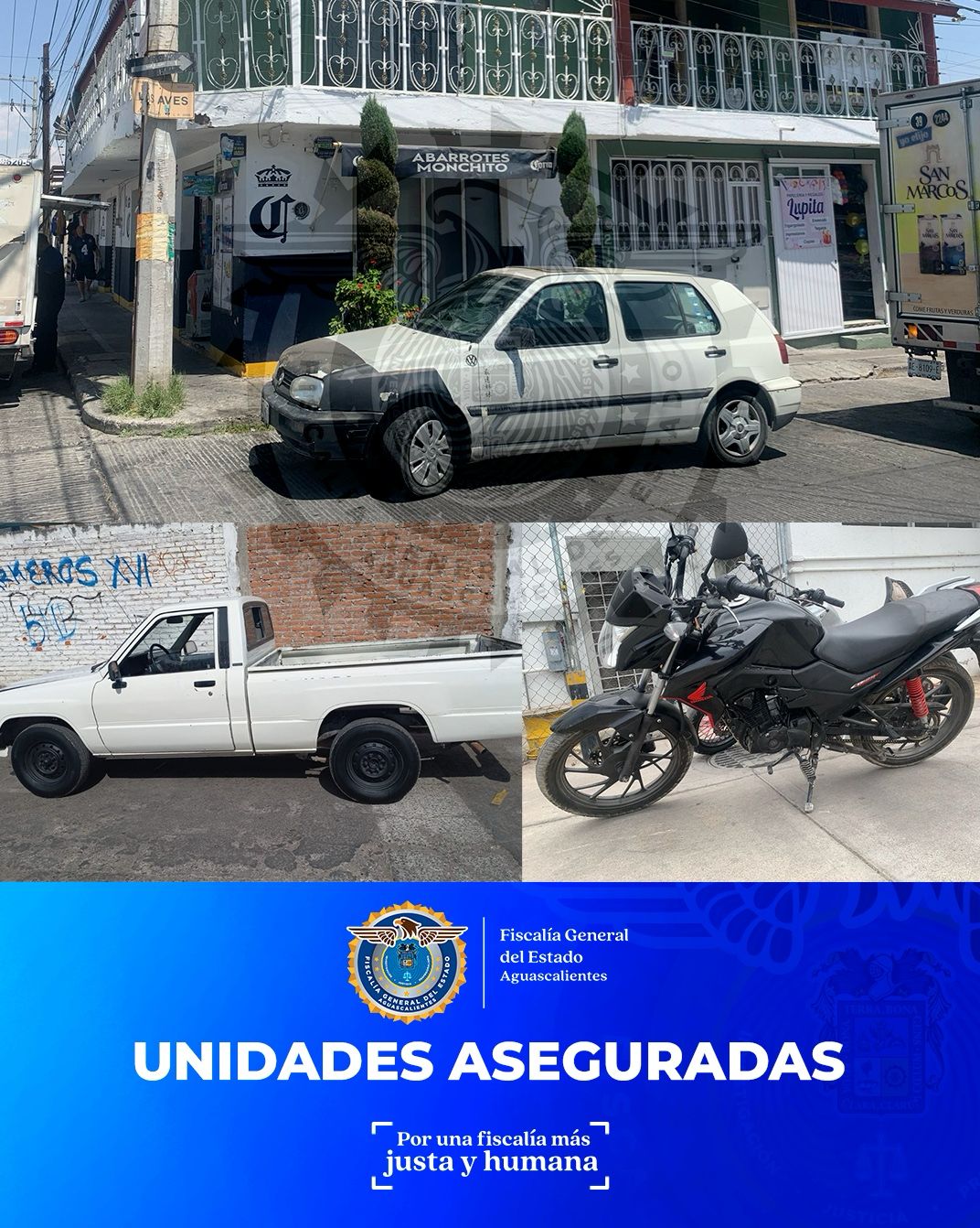 La Fiscalía General del Estado de Aguascalientes, a través de la Unidad Especializada en Combate al Robo de Vehículos, informa que continuará con firmeza en las labores de investigación, localización y aseguramiento de unidades con reporte de robo, reafirmando su compromiso con la ciudadanía para combatir este delito que afecta el patrimonio de las y los aguascalentenses.