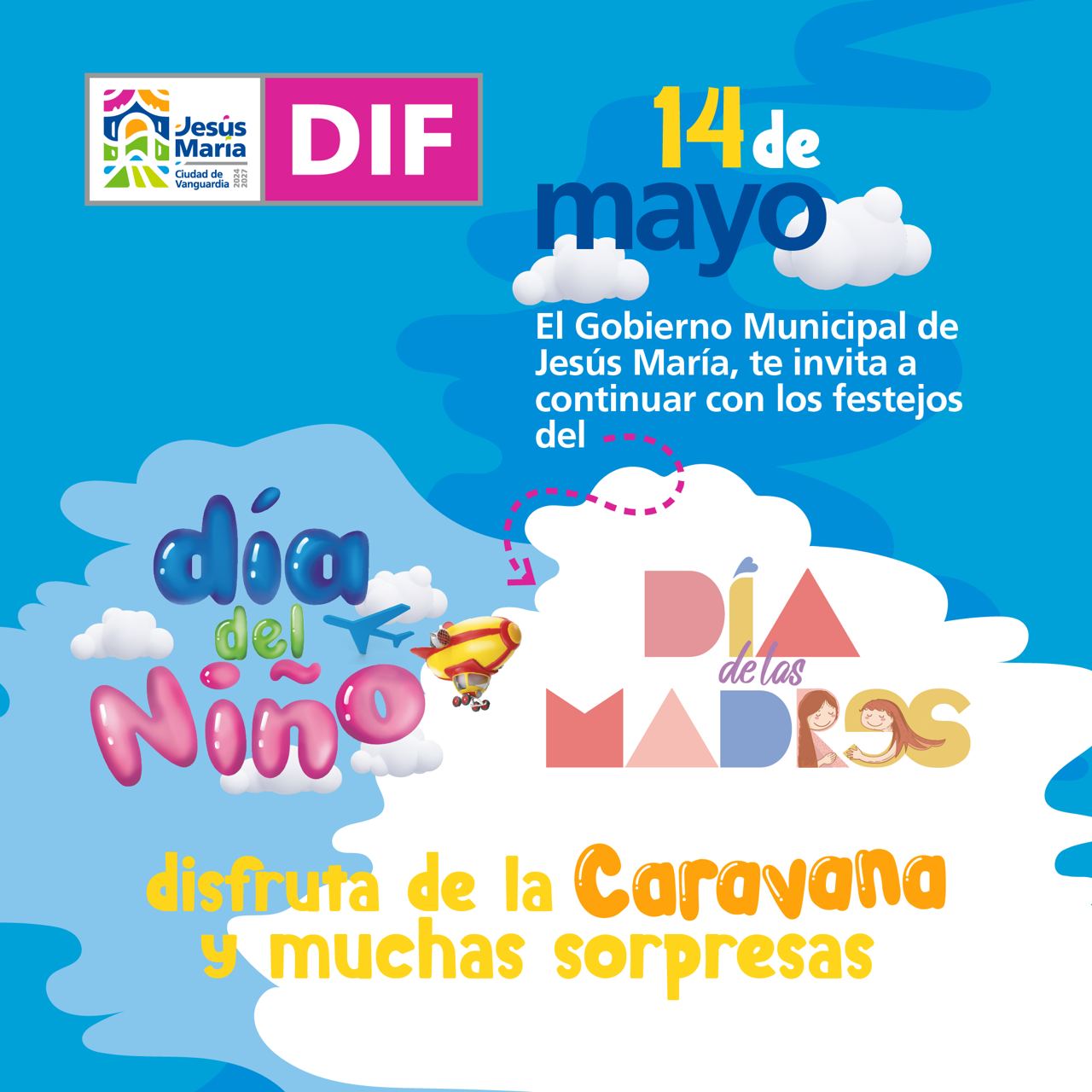 El Gobierno Municipal de Jesús María te invita a continuar con los festejos por el día de la madre y del niño.