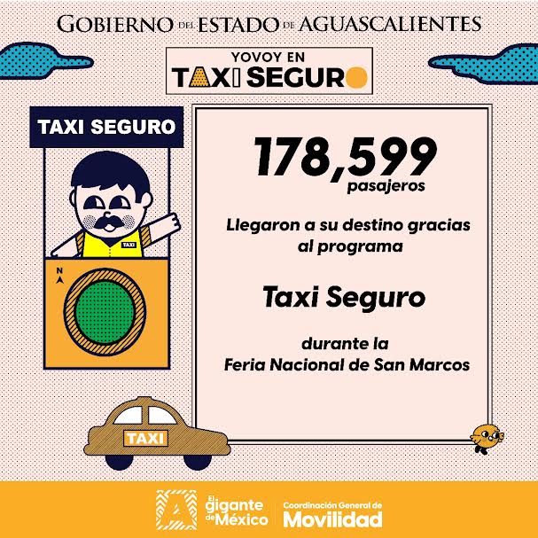 El Gobierno del Estado reconoce el desempeño que realizó cerca de 2 mil taxistas, quienes durante 23 días contribuyeron con su destreza detrás del volante al desarrollo de la verbena sanmarqueña, movilizando de forma segura a millas de visitantes que se ubicaban en el perímetro ferial, pues no se registraron incidentes en los 60 mil viajes realizados durante la Feria Nacional de San Marcos.