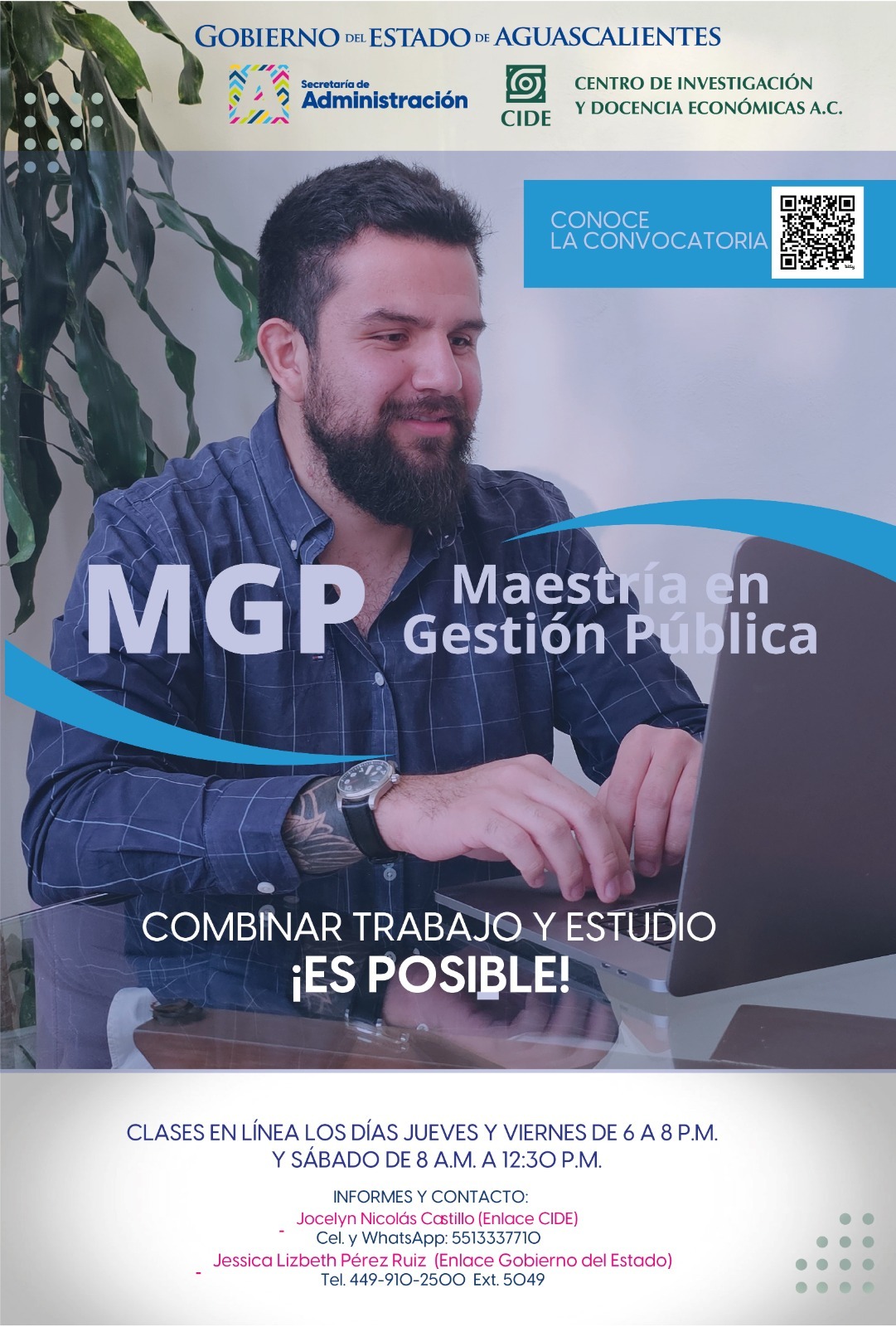 La Secretaría de Administración del Estado de Aguascalientes, en colaboración con el Centro de Investigación y Docencia Económicas (CIDE), invita a quienes estén interesados en incrementar sus conocimientos y fortalecer sus capacidades profesionales, a inscribirse en la Maestría en Gestión Pública (MGP).