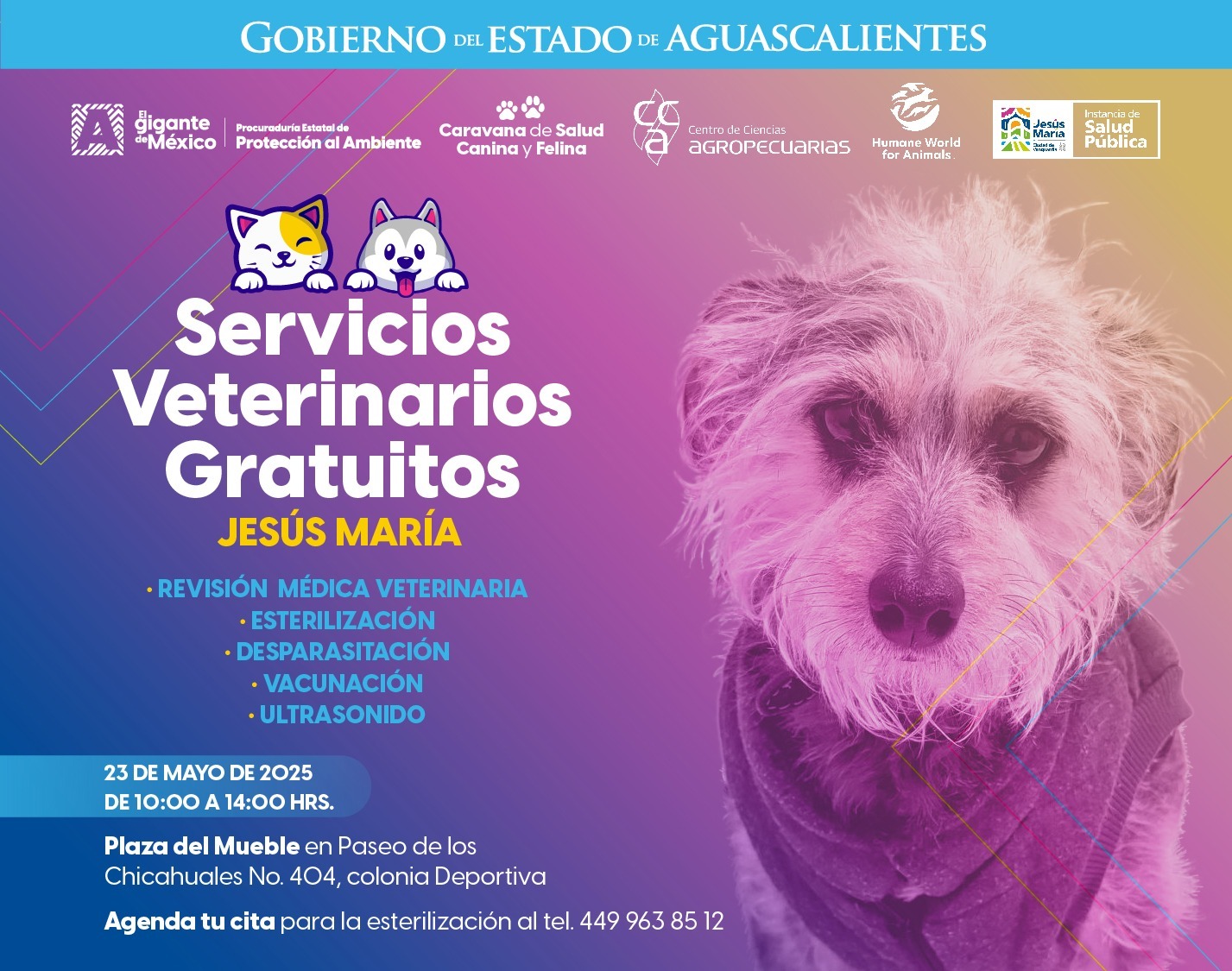 Los esperamos en la Caravana de Salud Canina y Felina 🐶🐱 que organizamos en colaboración con la Universidad Autónoma de Aguascalientes, Humane World for Animals Mexico y el Municipio de Jesús María.
