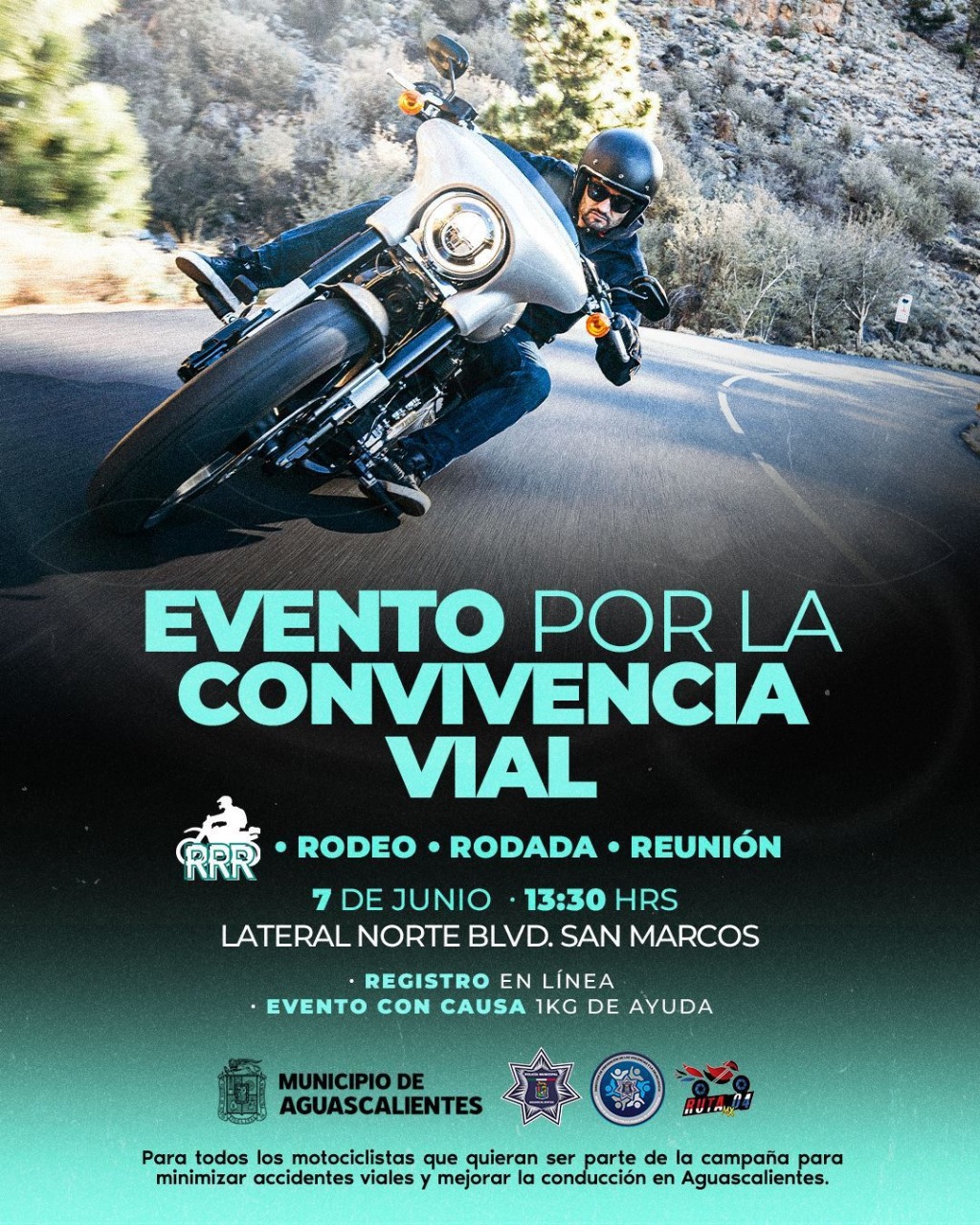 La Secretaría de Seguridad Pública Municipal de Aguascalientes (SSPM), a través de la Dirección de Prevención de las Violencias y la Delincuencia, en colaboración con la escuela de manejo autorizada Ruta 04 MX y pilotos experimentados, invita a todas y todos los motociclistas a participar en el evento “RRR: Rodeo, Rodada y Reunión”, una iniciativa con causa que busca promover la conciencia y la sana convivencia en la vía pública.