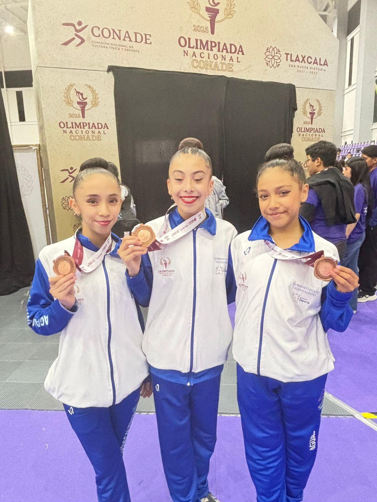 ✨ En la categoría 13-15 All Around por Equipos, Arantza Díaz Cervantes, Meredith Valentina Romero Velázquez y Danna Sophia Campos Rivera lograron una valiosa medalla de bronce.