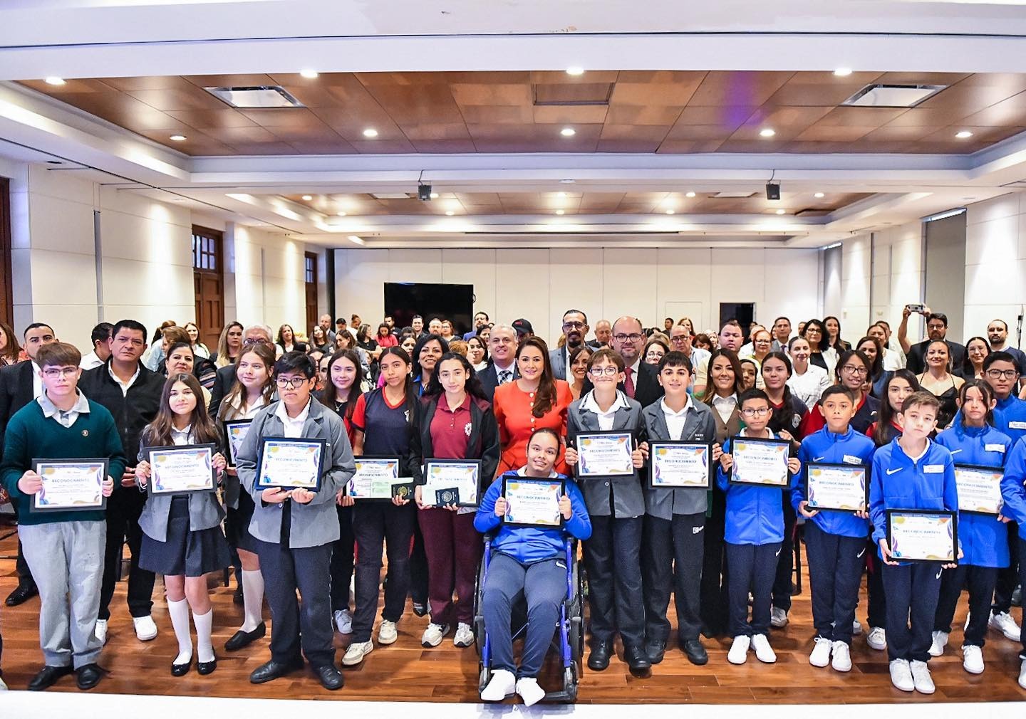 Durante el mismo acto, se premió a las y los ocho ganadores de la Olimpiada del Conocimiento Infantil 2025, quienes destacaron entre cerca de 25 mil estudiantes de sexto grado a nivel estatal, y que recibirán una beca educativa por parte de la Fundación BBVA México; este estímulo consiste en un apoyo mensual de 2 mil pesos a lo largo de los tres años de educación secundaria.