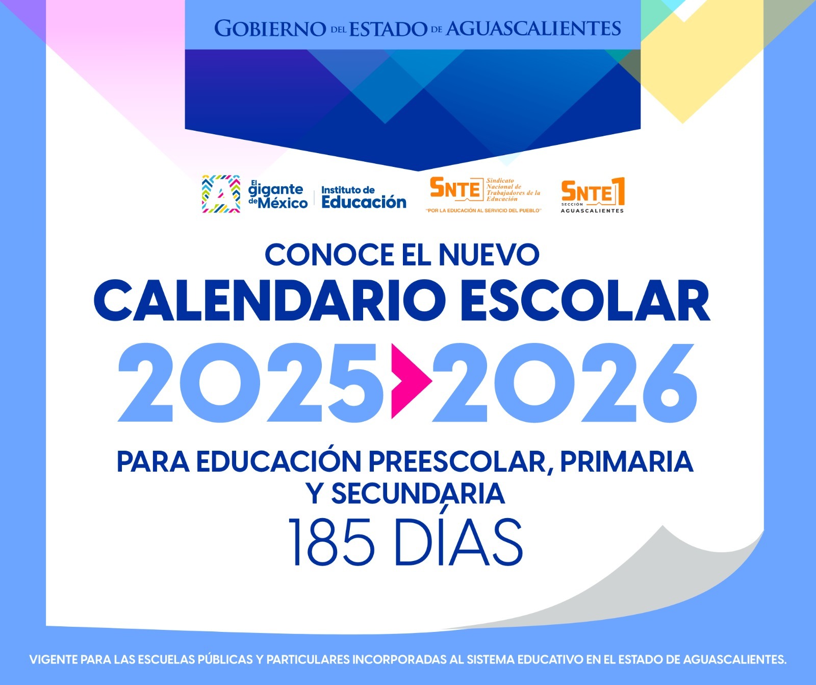 El Instituto de Educación de Aguascalientes (IEA) informa que el Calendario Escolar 2025-2026 para las escuelas públicas y particulares de educación básica ya se encuentra publicado y disponible para consulta en la página oficial www.iea.gob.mx. Este calendario contempla un total de 185 días efectivos de clases.