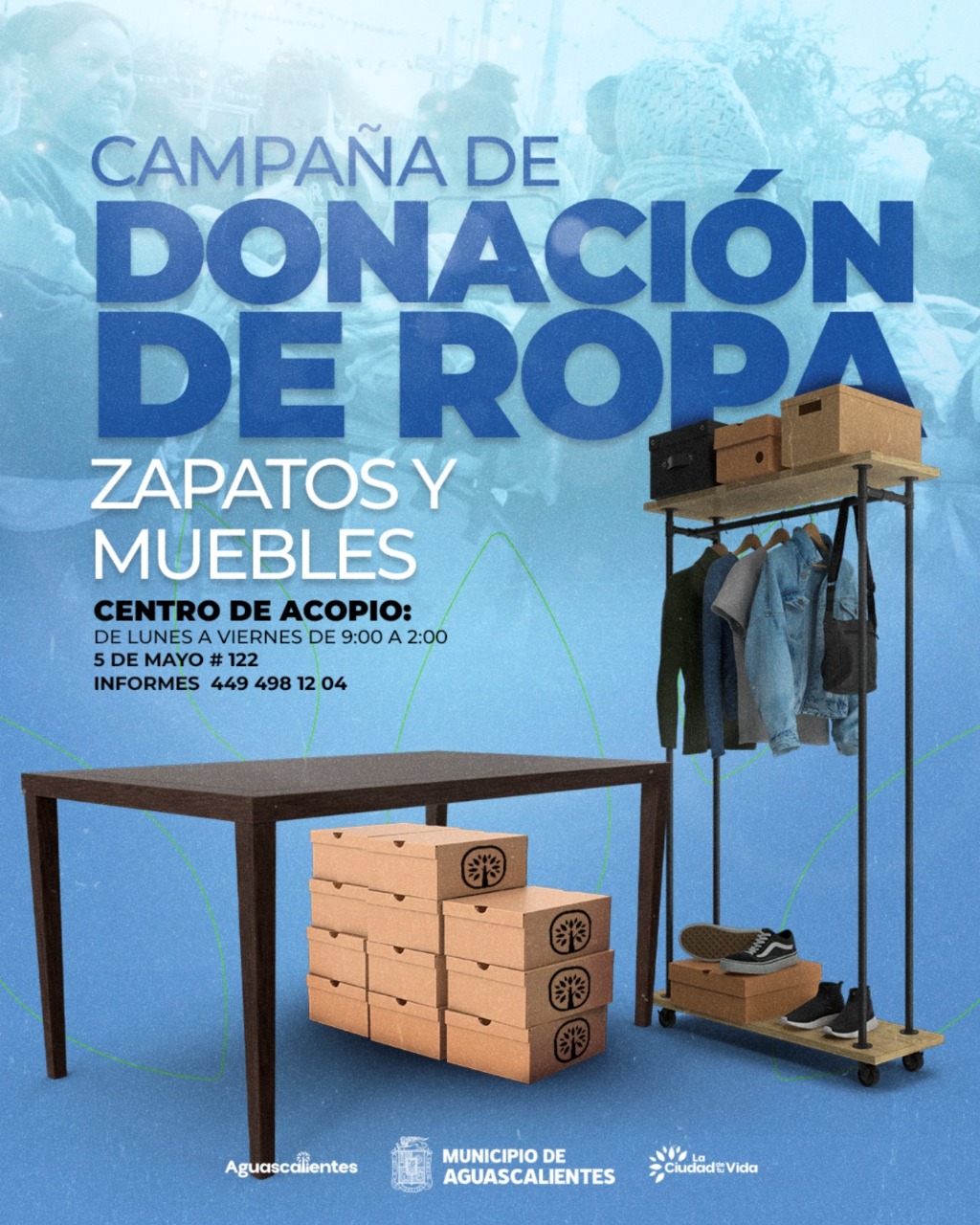 El Municipio de Aguascalientes, a través de la Secretaría de Desarrollo Social, lanza una campaña de donación de muebles, ropa y zapatos, para brindar apoyo a las familias que han resultado afectadas en sus viviendas por las recientes lluvias.