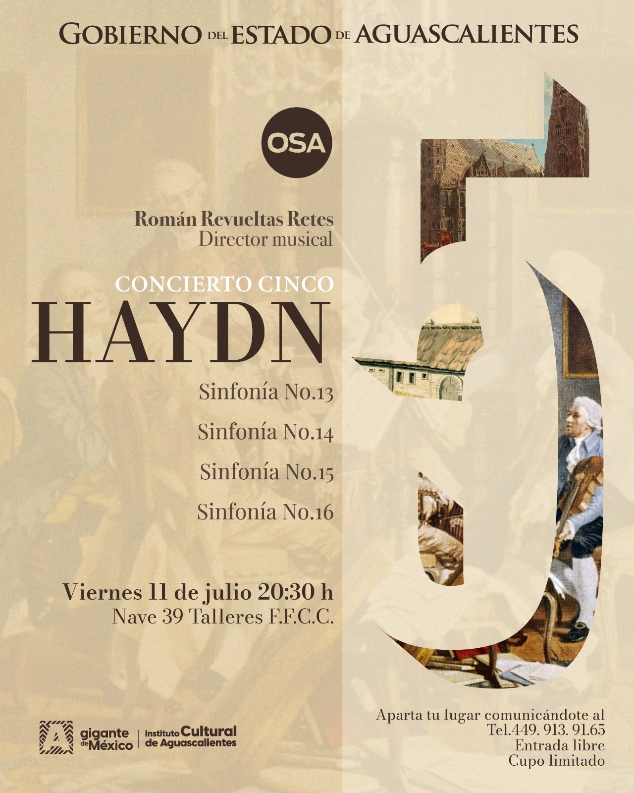 Te invitamos al concierto de la Orquesta Sinfónica de Aguascalientes que en esta ocasión se llevará a cabo en la Nave 39 del Complejo Ferrocarrilero Tres Centurias, el viernes 11 de julio a las 20:30 horas.