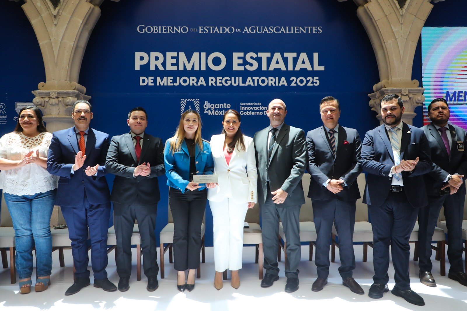 La gobernadora de Aguascalientes, Tere Jiménez, encabezó la ceremonia de entrega del Premio Estatal de Mejora Regulatoria 2025, un reconocimiento que destaca el esfuerzo de dependencias gubernamentales y ciudadanos que trabajan para simplificar y hacer más accesibles los trámites.