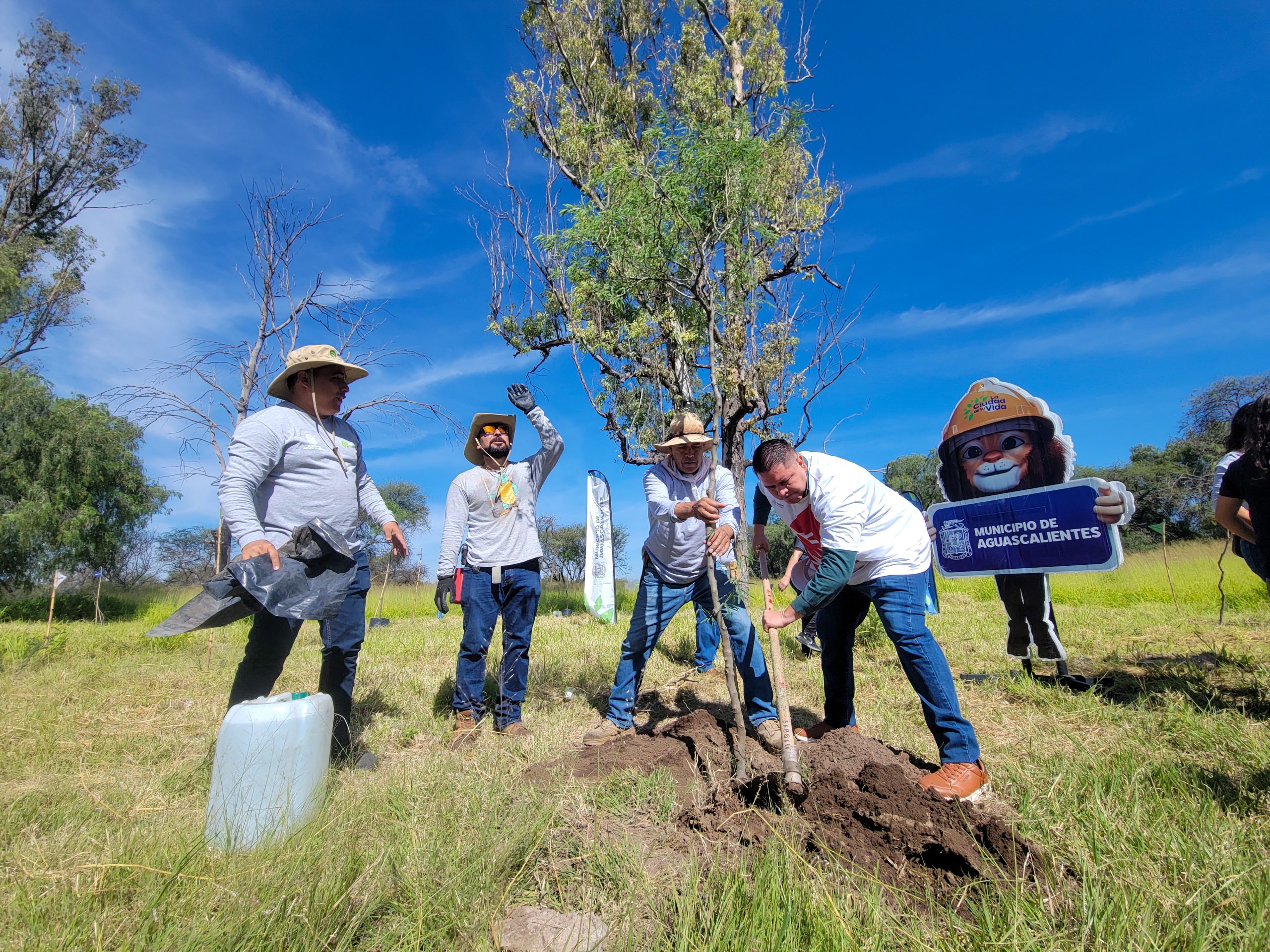 Con el propósito de contribuir al cuidado del medio ambiente y mejorar el entorno urbano, el Municipio de Aguascalientes, a través de la Secretaría de Medio Ambiente y Desarrollo Sustentable (Semadesu), llevó a cabo una jornada de reforestación en el Área Natural Protegida (ANP) de competencia municipal “La Pona”, en la que se plantaron 150 ejemplares de mezquite, árbol nativo de la zona.