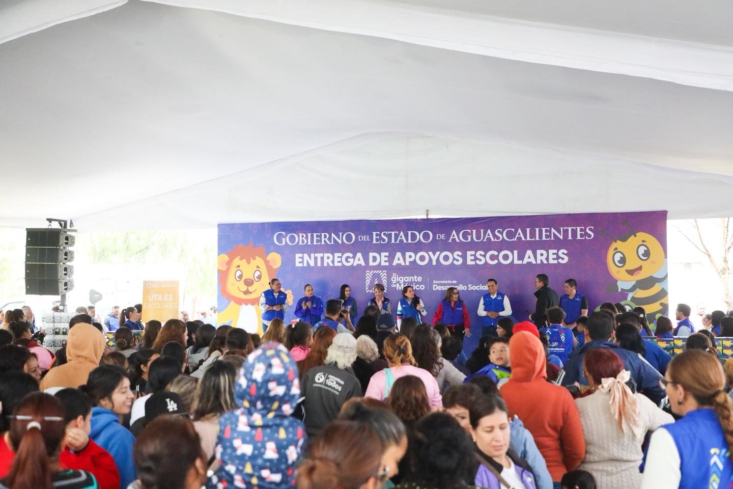La gobernadora de Aguascalientes, Tere Jiménez, continúa con la entrega de útiles escolares, tenis y zapatos a estudiantes de nivel básico. En total, se entregarán más de 72 mil apoyos en todos los municipios del estado.