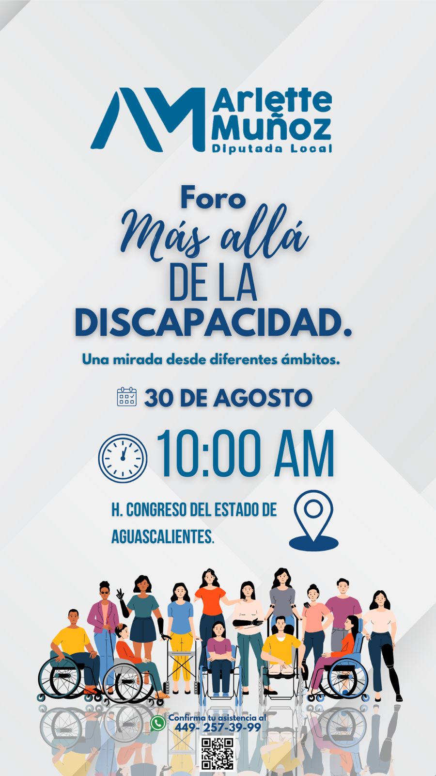 Arlette Muñoz manifestó que, desde el legislativo, ha presentado iniciativas que se enfocan en el tema de foros digitales para personas con discapacidad, la creación de un observatorio que supervise y sea generador de políticas públicas en favor de las personas con discapacidad, y el empleo como un reto constante. Entre otras.