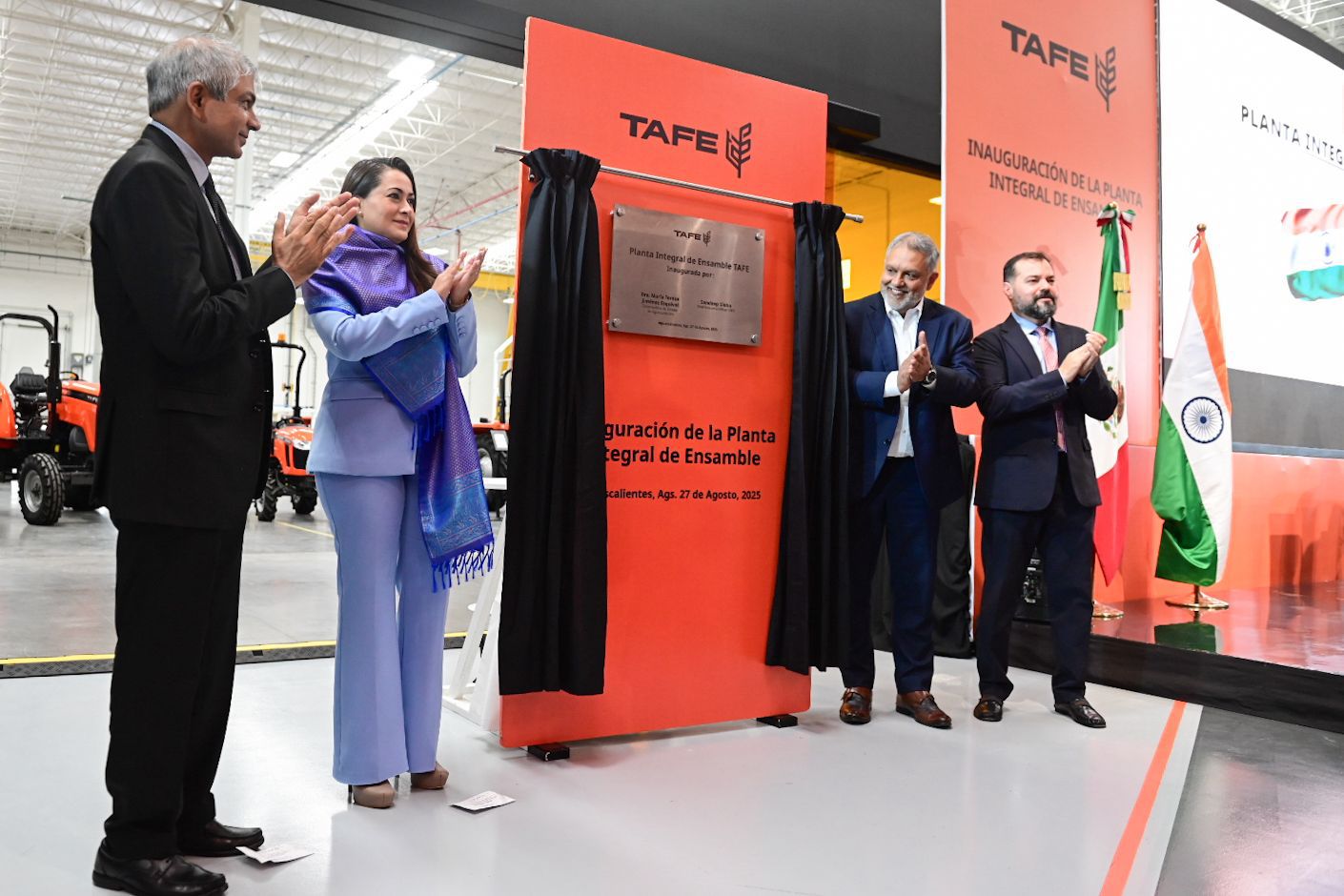 Con una inversión de más de 280 millones de pesos y la generación de 250 empleos, la gobernadora de Aguascalientes, Tere Jiménez, inauguró la nueva planta de ensamble de la empresa TAFE (Tractors and Farm Equipment Limited), ubicada en Vesta Park.