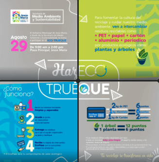 Con el objetivo de fomentar una cultura ambiental responsable, el Gobierno Municipal de Jesús María, a través de la Secretaría del Medio Ambiente, invita a la ciudadanía en general a participar en el “Eco trueque” que se llevará a cabo el 29 de agosto en la plaza principal.