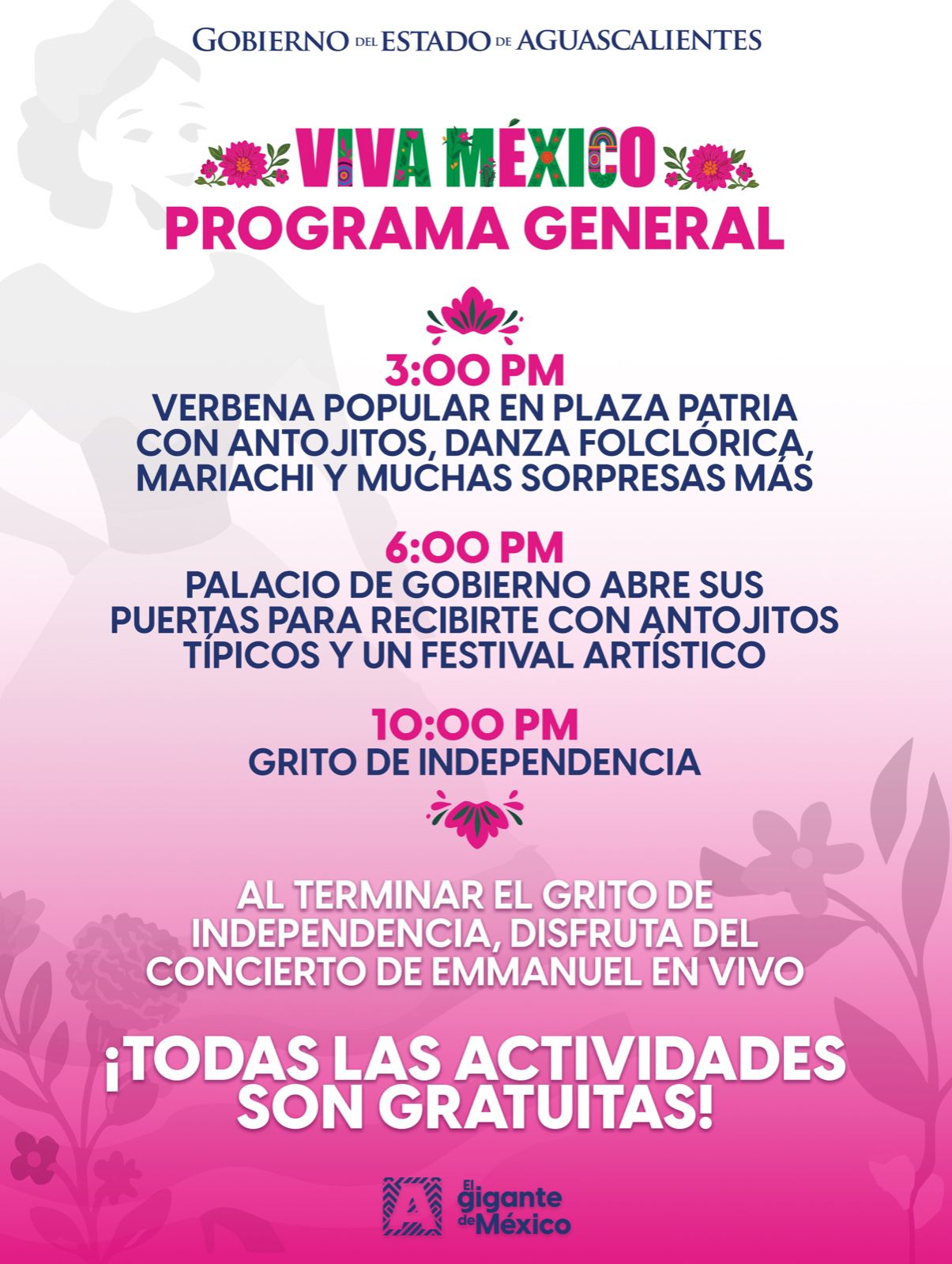 PROGRAMA GENERAL PARA FESTEJAR LAS FIESTAS PATRIAS EN AGUASCALIENTES