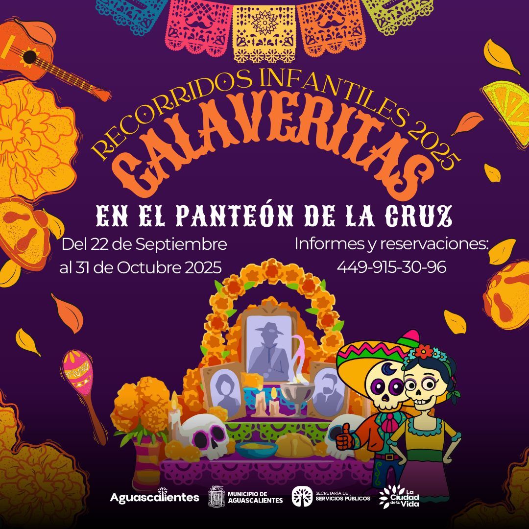 La Secretaria de Servicios Públicos a través de la Dirección de Panteones Municipales invita a las escuelas con alumnos de preescolar, primero, segundo, tercero y cuarto de primaria a participar en los Recorridos Infantiles 2025, que se llevarán a cabo en los panteones De la Cruz y De los Ángeles, del 22 de septiembre al 31 de octubre de 2025. Las actividades se realizarán de lunes a viernes, con horarios disponibles a las 9:00 a.m., 10:00 a.m. y 11:00 a.m.