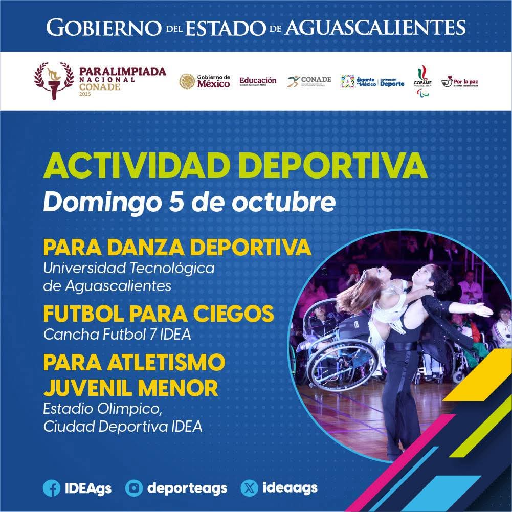 Este domingo continúa la actividad de la Paralimpiada Nacional en Aguascalientes. La disciplina de danza deportiva llega a su fin. ¡Suerte a todos los competidores!