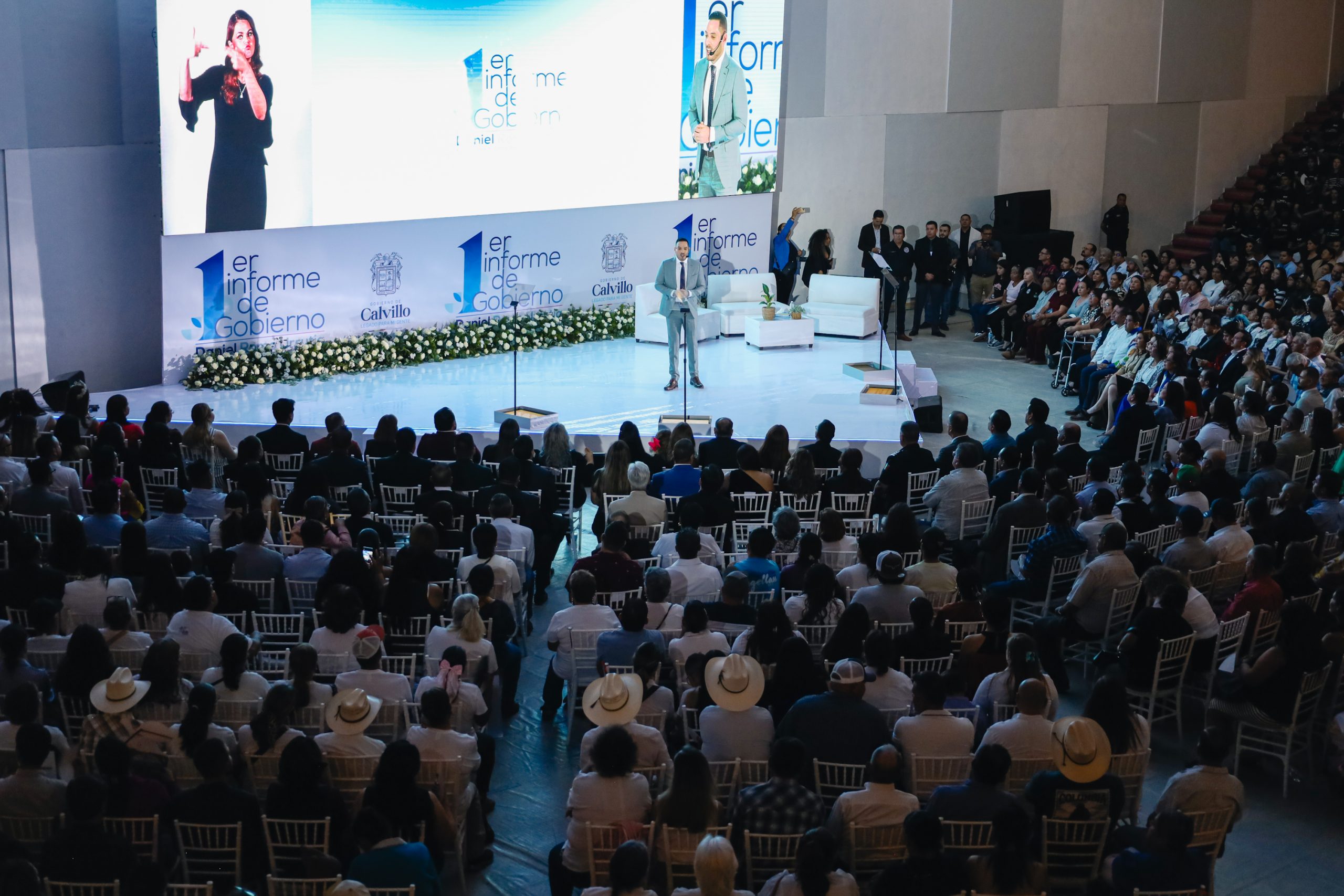 El alcalde de Calvillo, Daniel Romo Urrutia, presentó el primer informe de su segunda administración, luego de ser reelecto con el mayor número de votos en la historia de este municipio, ante un recinto repleto que le brindó un amplio respaldo ciudadano y con la asistencia de la gobernadora Tere Jiménez, senadores, diputados federales, locales, organizaciones civiles y presidentes municipales, en el que destacó las principales acciones, resultados y programas sociales, de obra pública, desarrollo económico, servicios públicos, turismo y seguridad.