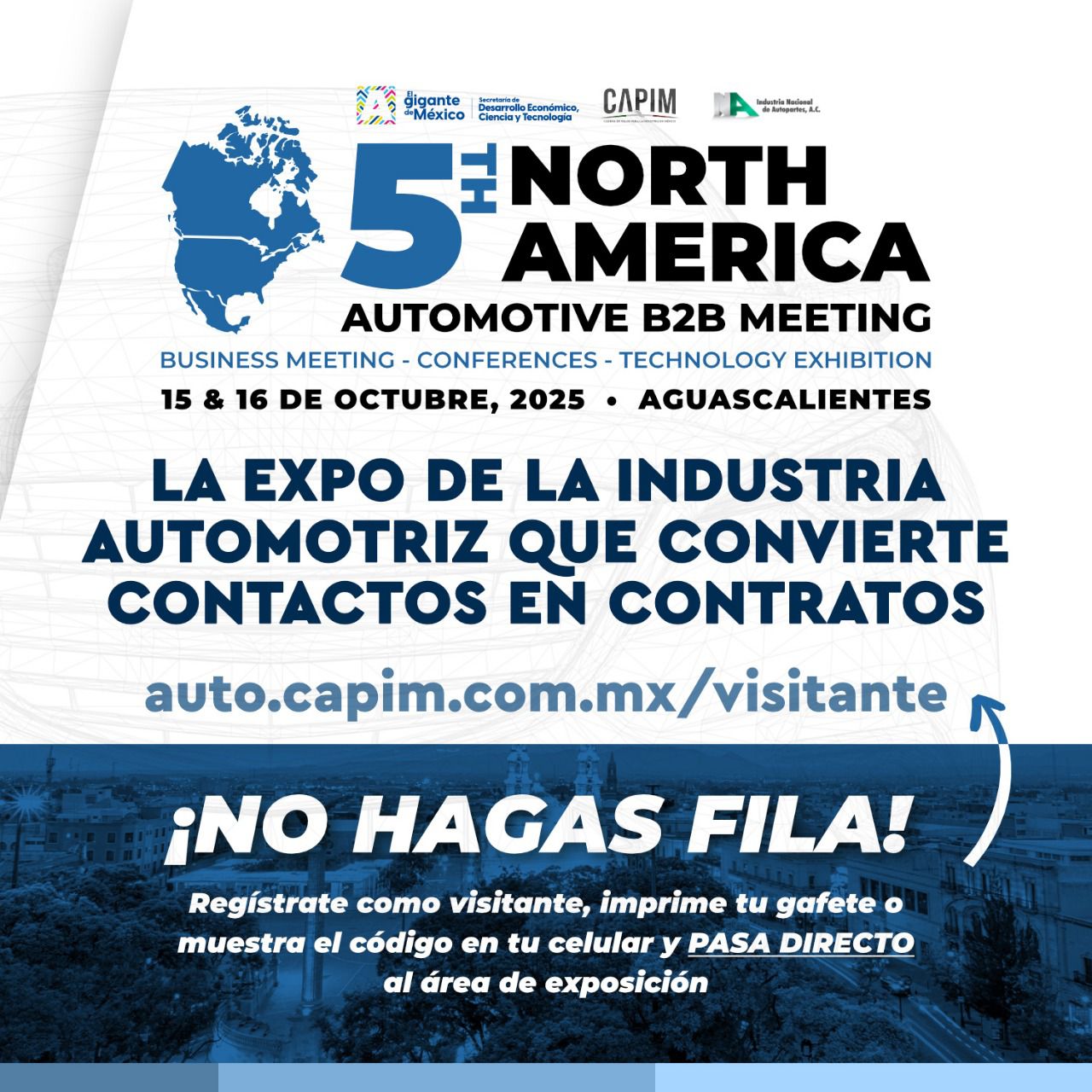 Por quinto año consecutivo, Aguascalientes será sede del North America Automotive B2B Meeting, el encuentro de negocios de la industria automotriz más grande en México y Norteamérica, organizado por la Asociación de la Industria Nacional de Autopartes (INA) y la Cadena de Proveedores de la Industria en México (Capim), con el apoyo de la Secretaría de Desarrollo Económico, Ciencia y Tecnología.