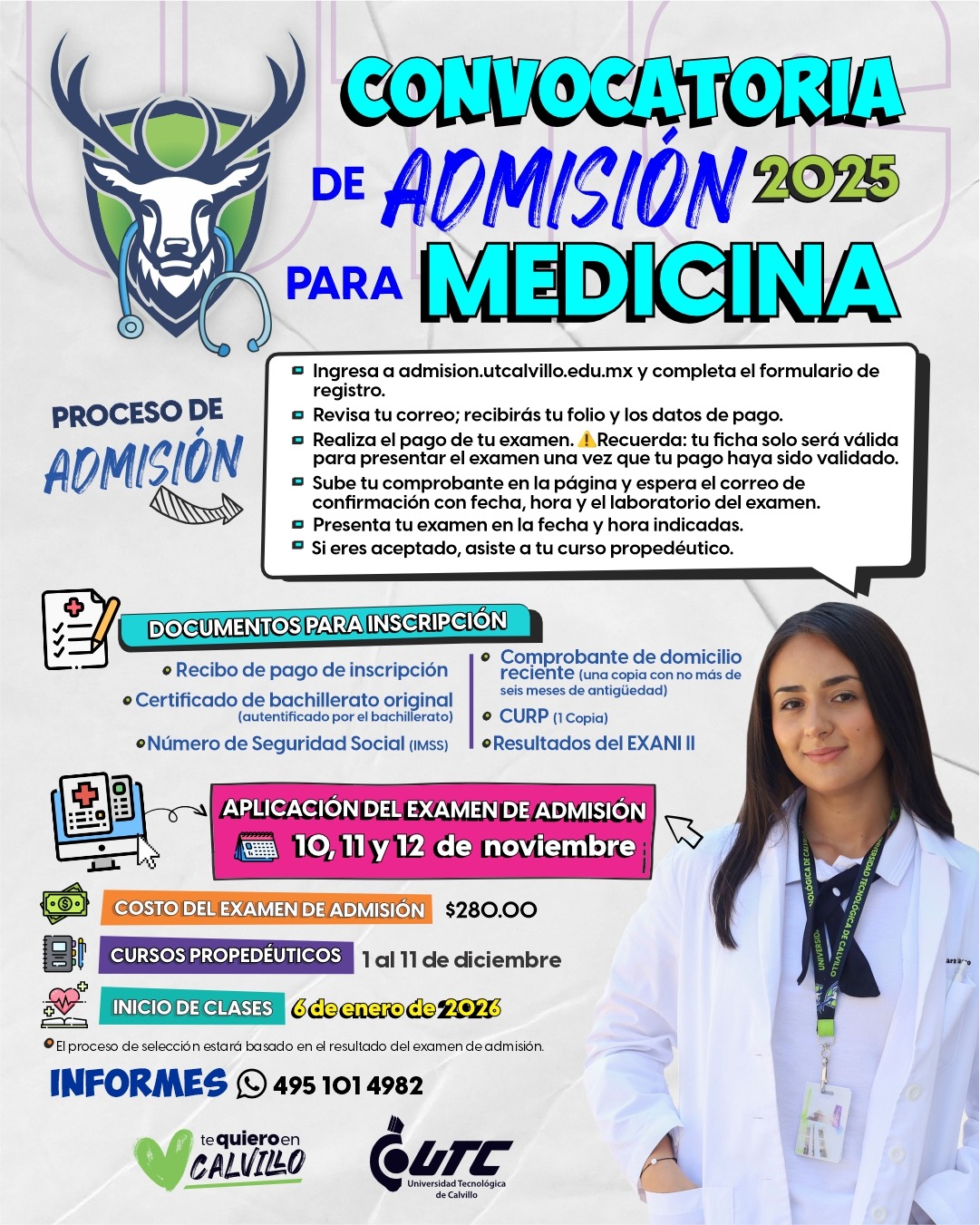Para dar respuesta a las y los jóvenes interesados en formarse en el ámbito de la salud, la Universidad Tecnológica de Calvillo (UTC) anunció la apertura de un nuevo grupo de la carrera de Medicina, que iniciará clases en enero de 2026.