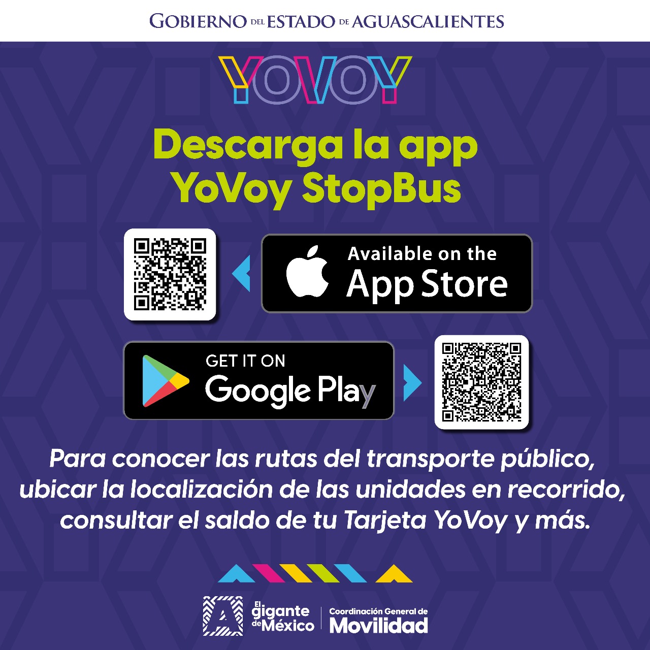 https://play.google.com/store/apps/details?id=com.mx.nrtec.agsstopbus&hl=en&pli=1 y para dispositivos iOS https://apps.apple.com/us/app/yovoy-stopbus/id1642776446.