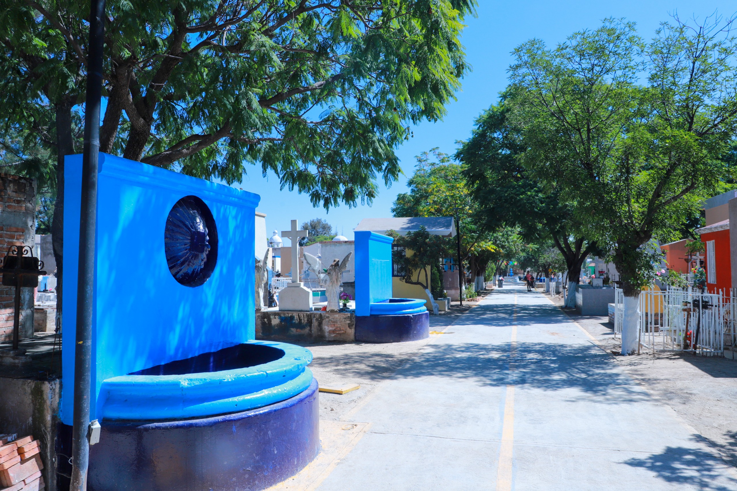 El secretario de Servicios Públicos Municipales, Enrique Barba, informó que las cuadrillas han intensificado las labores de mantenimiento y desmalezado en los seis cementerios municipales, despejando los pasillos para que los visitantes puedan desplazarse sin inconvenientes dentro de los camposantos, además de que se han rehabilitado las fuentes y áreas comunes.