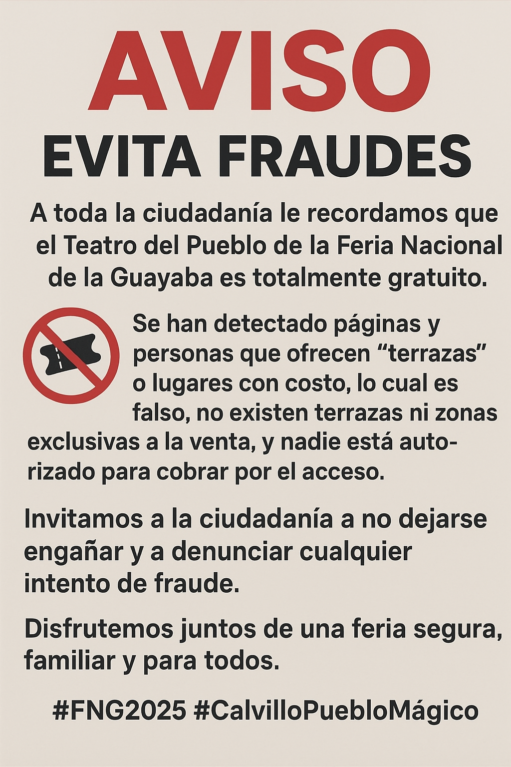 🚫 Se han detectado páginas y personas que ofrecen “terrazas” o lugares con costo, lo cual es falso, no existen terrazas ni zonas exclusivas a la venta, y nadie está autorizado para cobrar por el acceso.