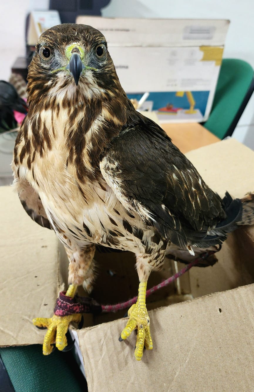 Rescatamos a un águila de cola roja que quedó atrapada entre las ramas de un árbol dentro de un domicilio particular en el municipio de Aguascalientes.