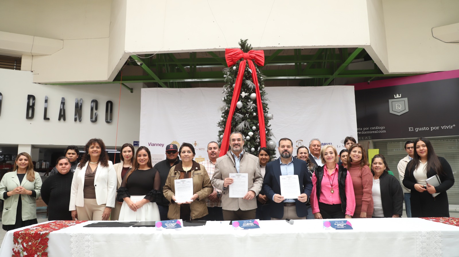 En la firma del convenio estuvieron presentes Esaú Garza de Vega, titular de la Sedecyt; Mauricio González López, secretario de Turismo; Ma. Guadalupe Lira Peralta, decana del Centro de Ciencias del Diseño y de la Construcción de la UAA; Anahí Marín López, subsecretaria para la Micro, Pequeña y Mediana Empresa de la Sedecyt; María Cristina Gutiérrez Velasco, directora general de Planeación y Proyectos de la Sectur; y Leticia Gómez Gutiérrez, jefa del Departamento de Diseño de Moda de la UAA.