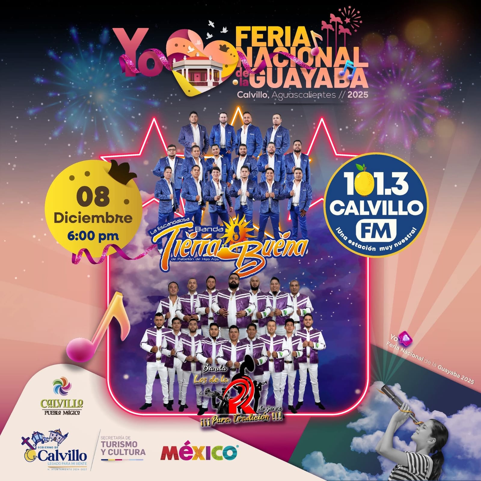 El lunes 8 de diciembre te esperamos en el Teatro del Pueblo de la 𝗙𝗲𝗿𝗶𝗮 𝗡𝗮𝗰𝗶𝗼𝗻𝗮𝗹 𝗱𝗲 𝗹𝗮 𝗚𝘂𝗮𝘆𝗮𝗯𝗮 𝟮𝟬𝟮𝟱 con lo mejor del Festival de la Radio Calvillo FM 101.3 Mhz.