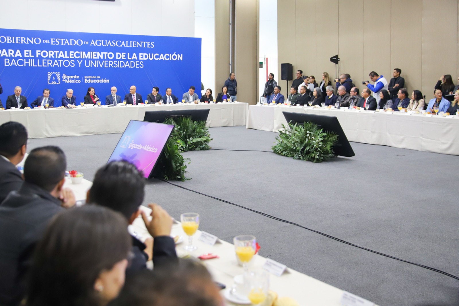 La gobernadora Tere Jiménez encabezó la Sesión Ordinaria del Sistema Estatal para el Fortalecimiento de la Educación Media Superior y Superior (SEFEMSyS), en la que se presentaron los avances y resultados de este modelo que impulsa una educación de mayor calidad y con visión de futuro para las y los jóvenes de Aguascalientes.