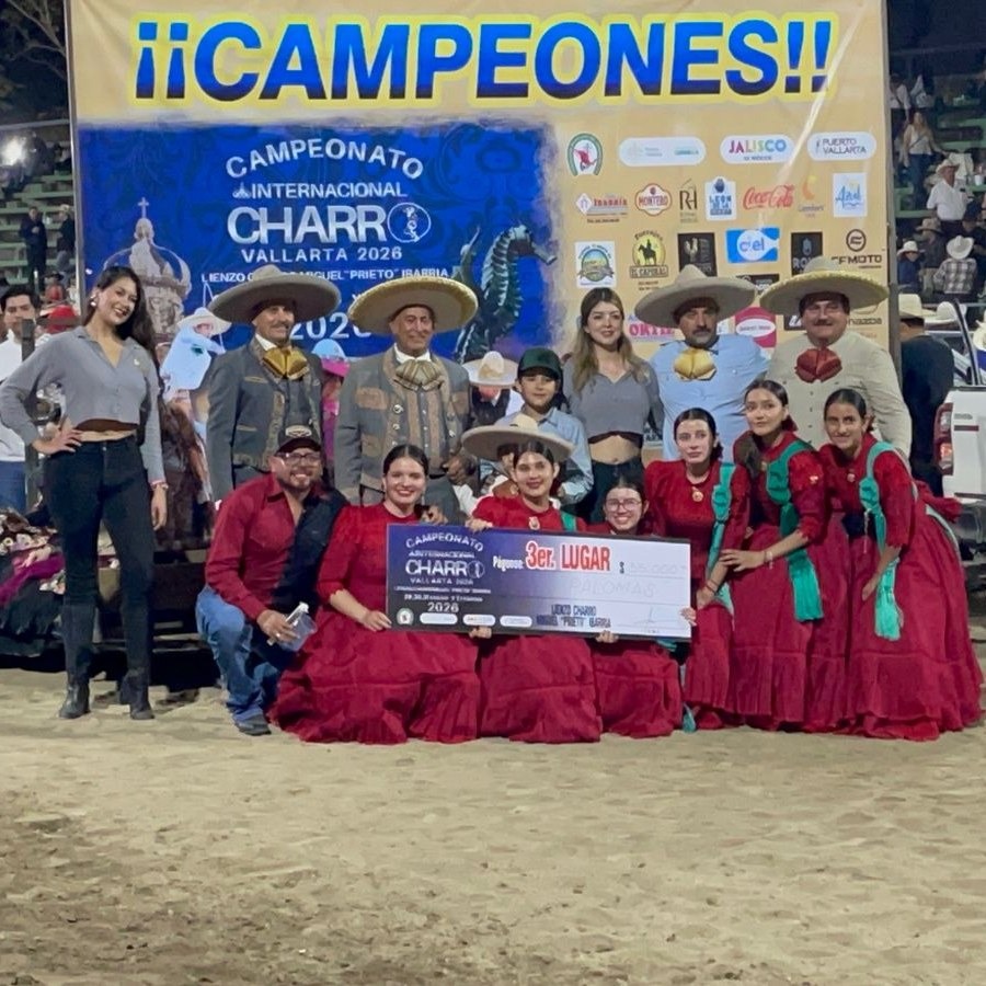 Las escaramuzas del equipo Palomas, originarias de Jesús María, se subieron al podio en el Campeonato Internacional Charro Vallarta 2026, celebrado en Puerto Vallarta, Jalisco, al conquistar el tercer lugar donde se enfrentaron a más de 20 equipos de todo el país.